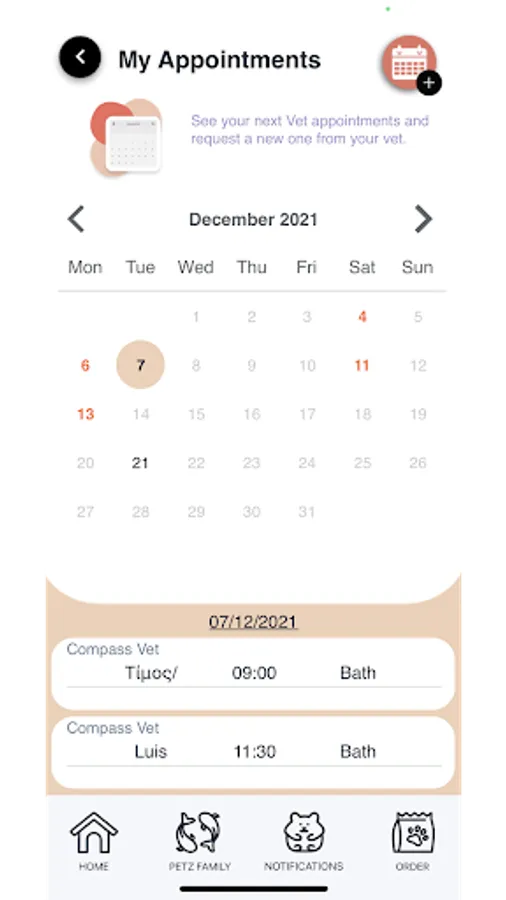Arrange appointments to the Vet with the touch of a few buttons!