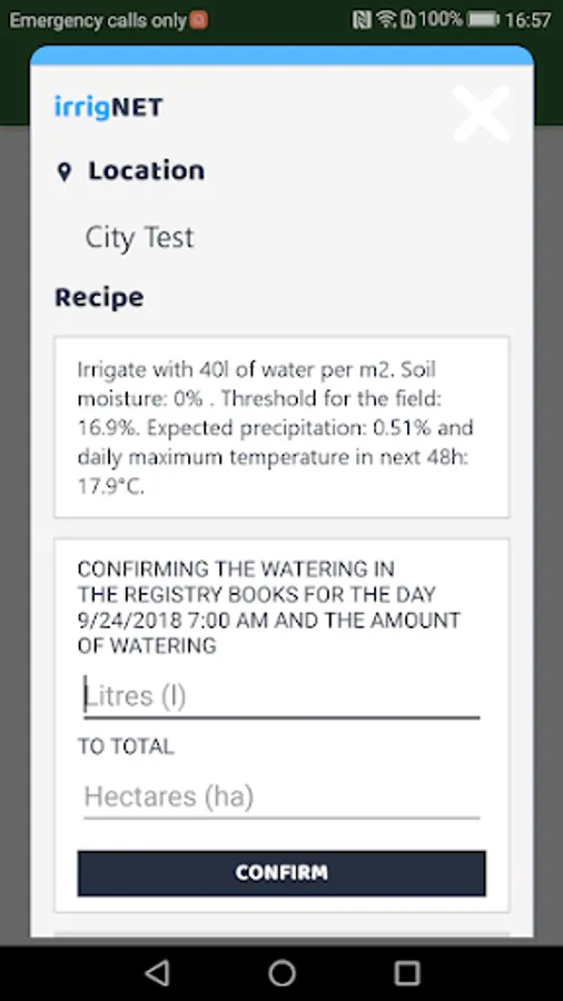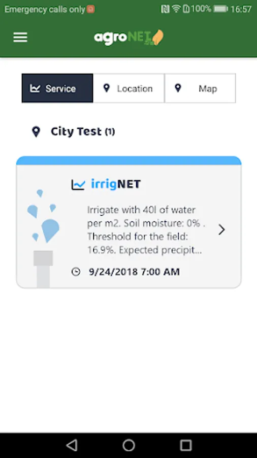 irrigNET - Simple and confident service that brings higher yields and better profit. IrrigNET service makes the irrigation "recipe" according to crop requirements, soil type, soil humidity and weather conditions. It gives information when and how to irrigate, the exact time of irrigation and the exact amount of water to be used.