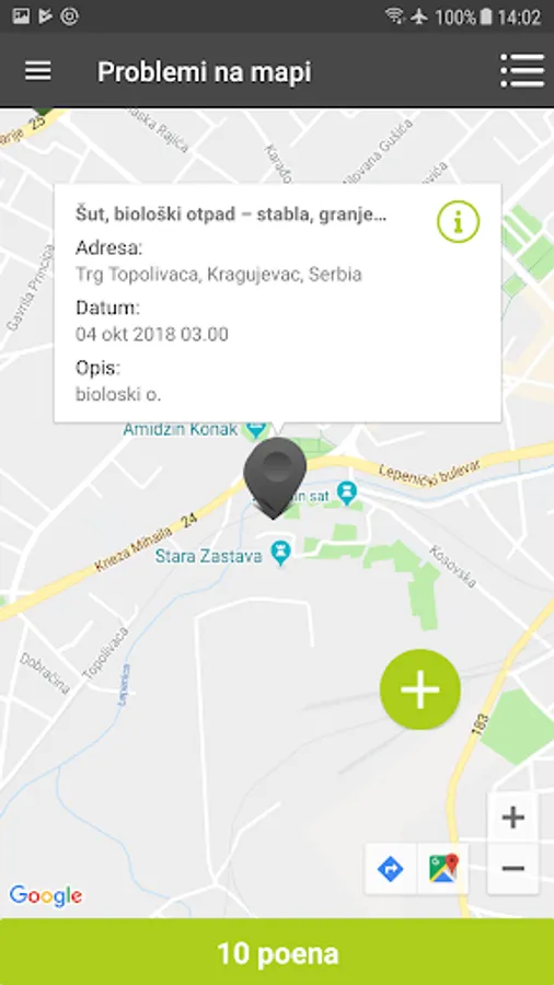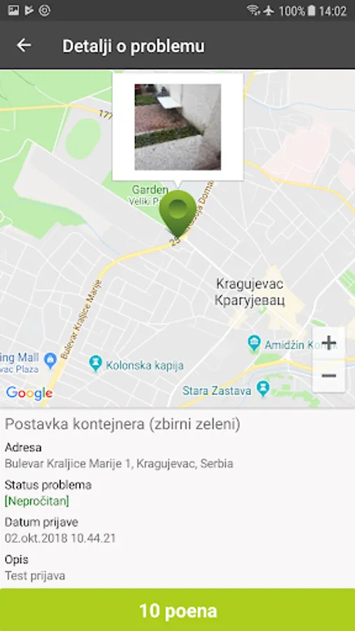 The reported problems are forwarded to the competent municipal services in the city for the purpose of alarming and solution.
