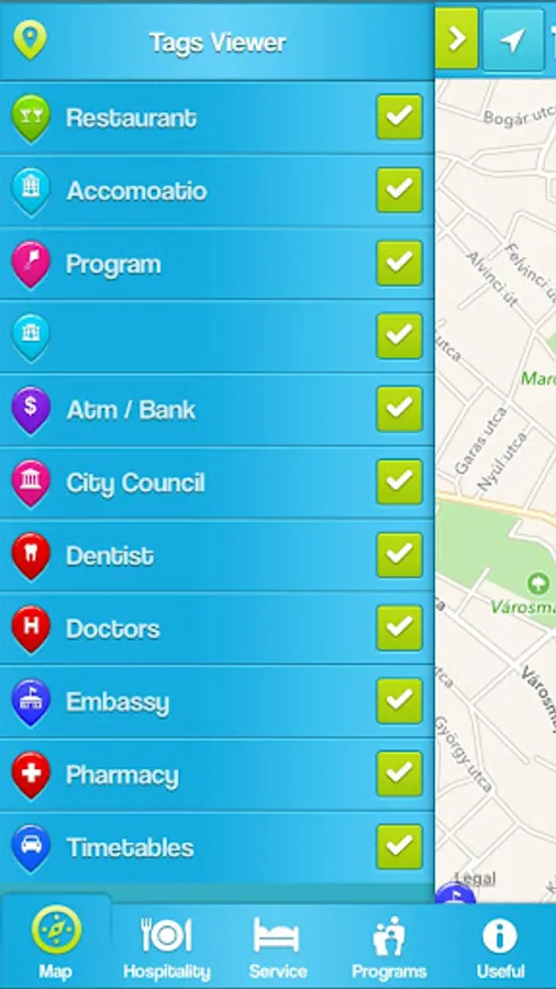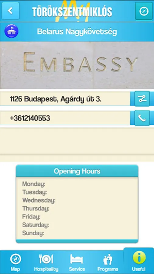 Useful information can also be found on the trading application: fogorvosi-, medical offices, car rental, Embassies, Banks, Shopping.
