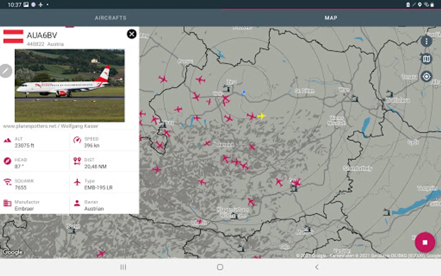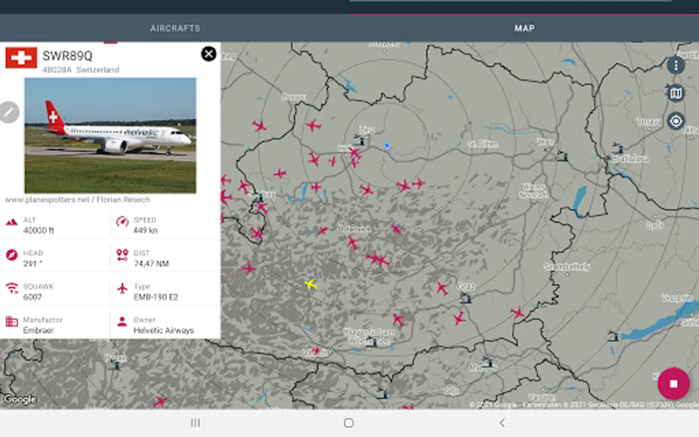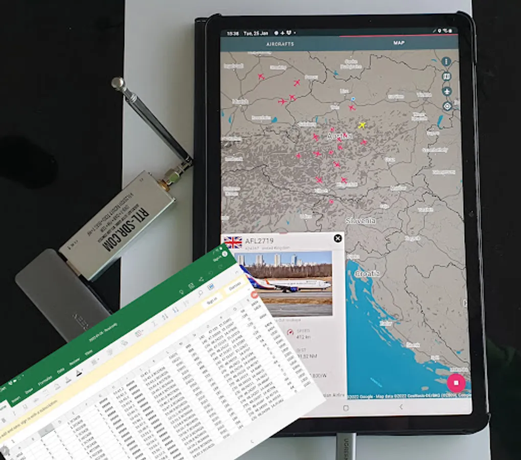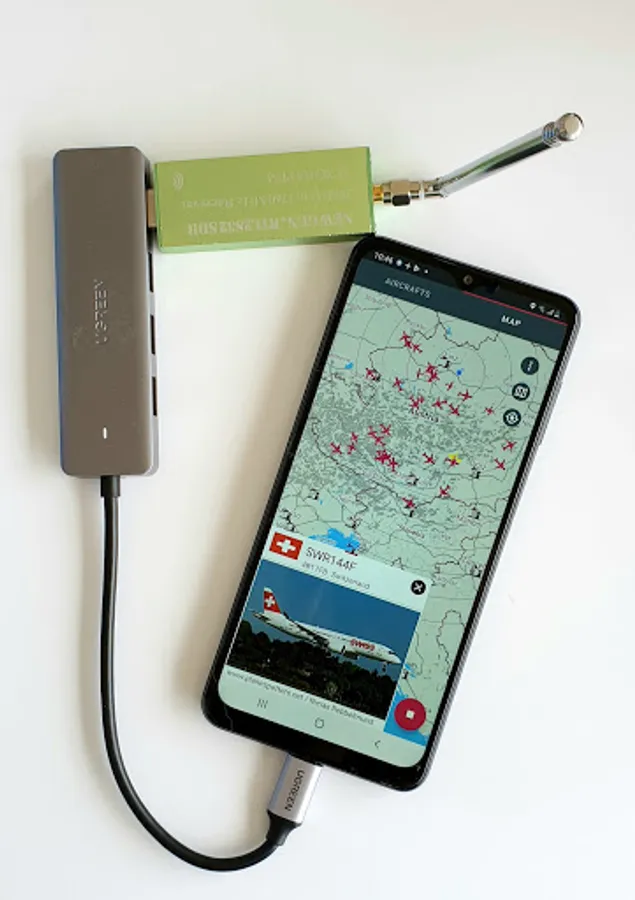 Turn your device in combination with a DVB-T USB stick (RTL-SDR) to a real ADS-B receiver and show aircraft positions on a map.