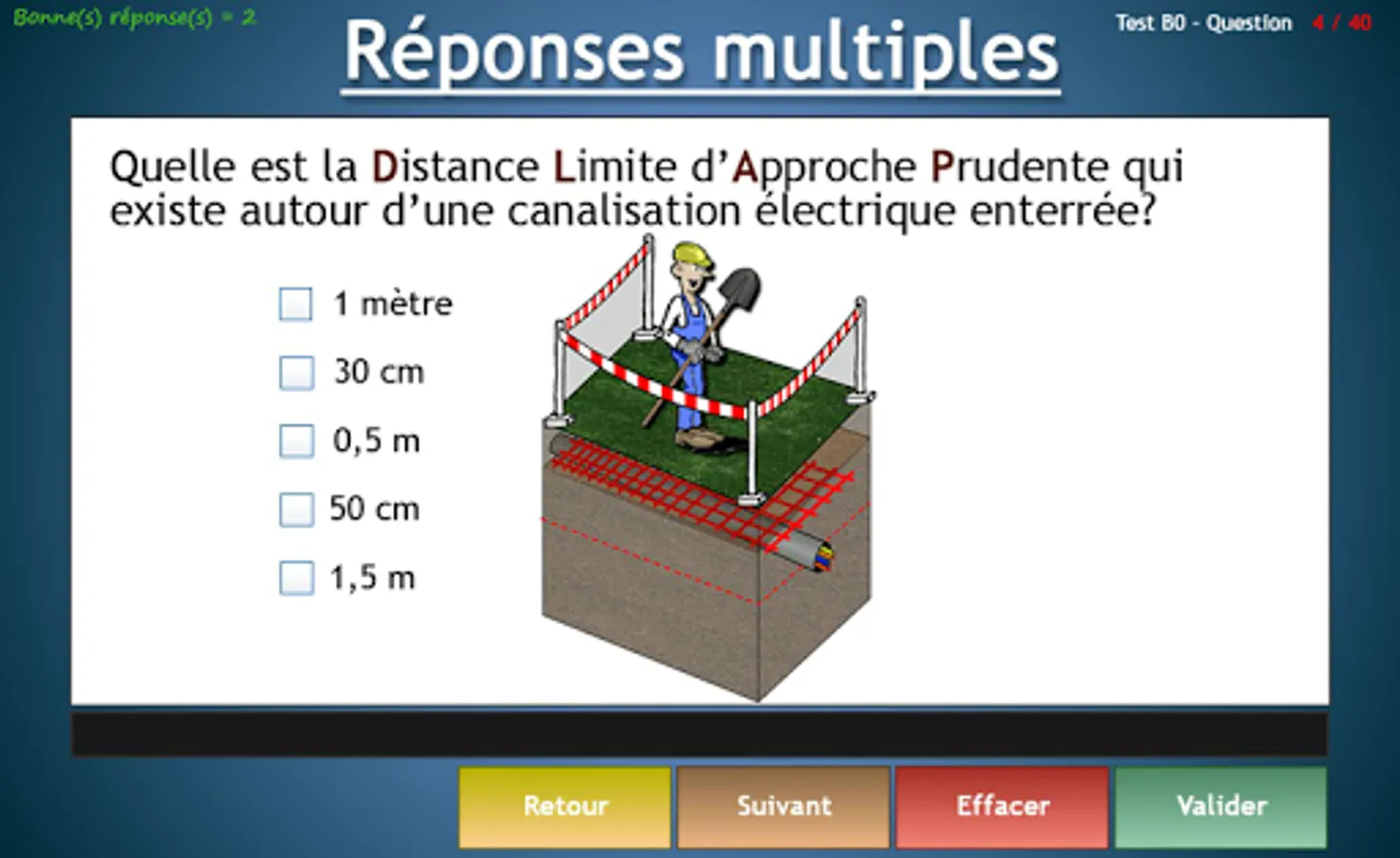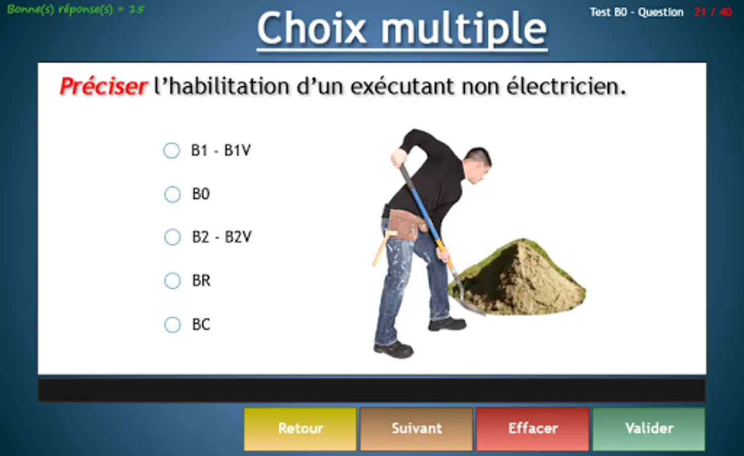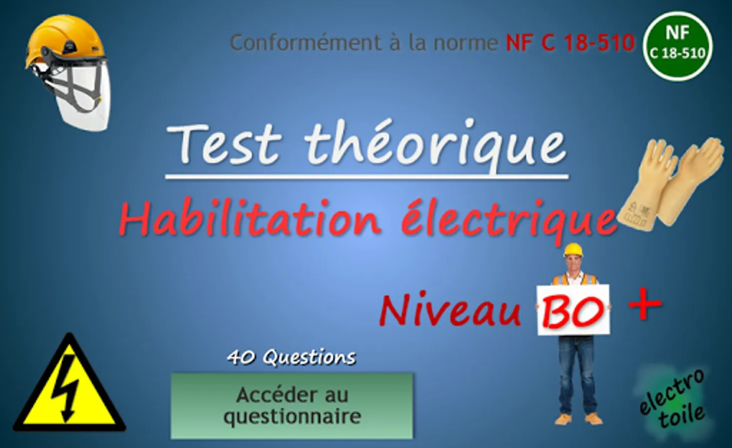 The questionnaire contains 40 questions to prepare the theoretical test for the B0 Project Manager - Executing non-electrician qualification (NF C 18-510 standard updated January 2012).