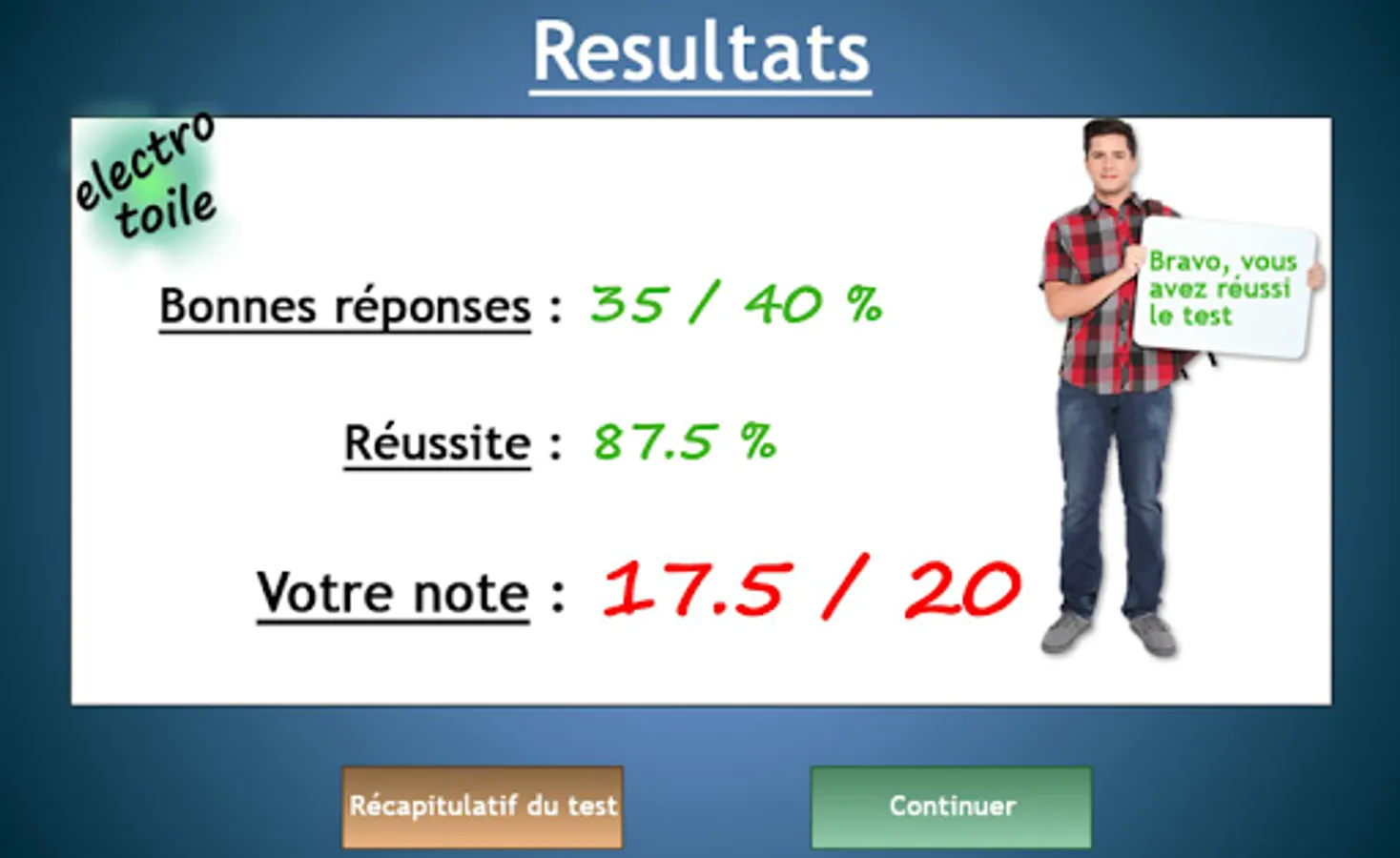 To validate the test it is necessary to obtain a percentage of success greater than or equal to 80% or 32 correct questions minimum.