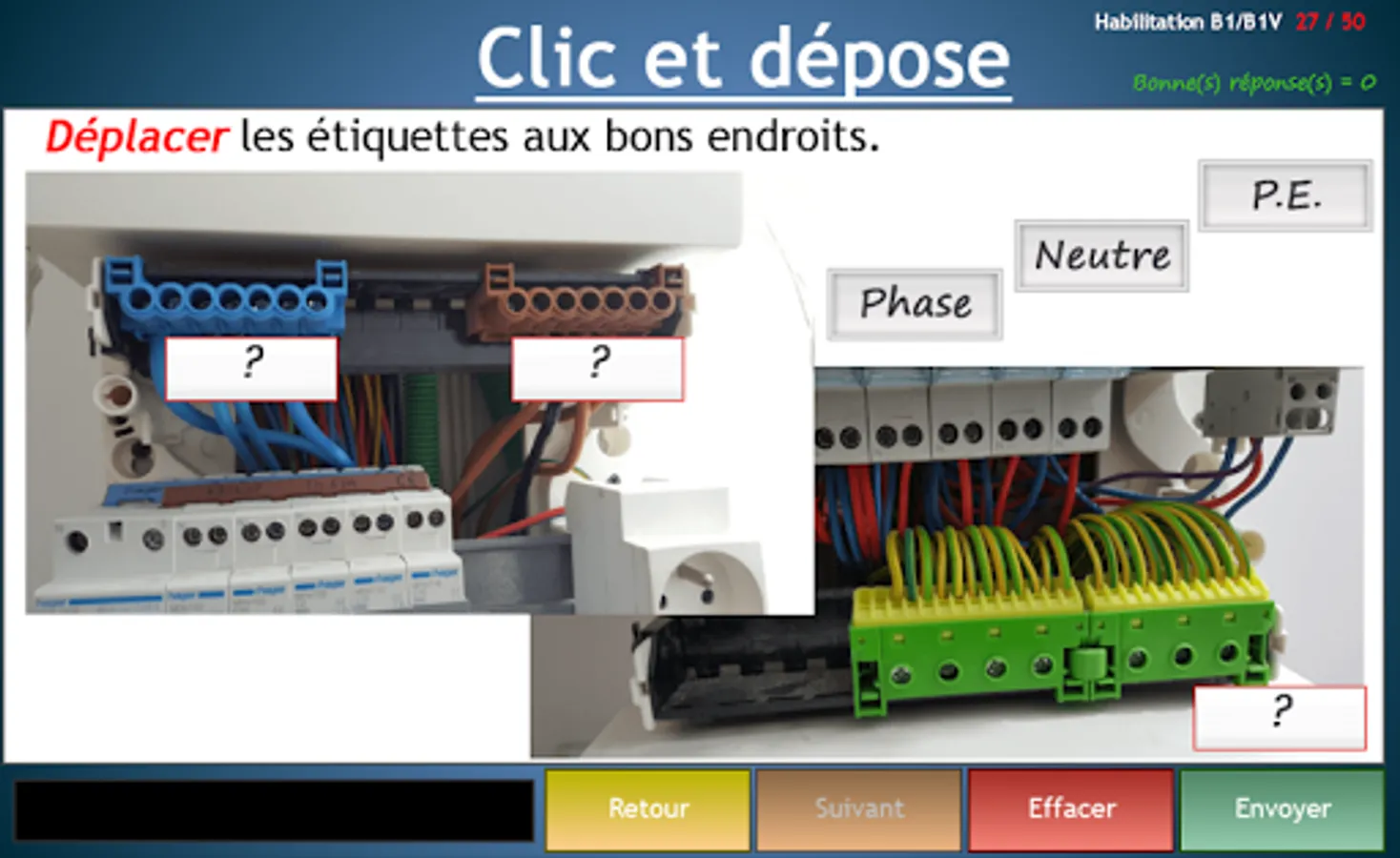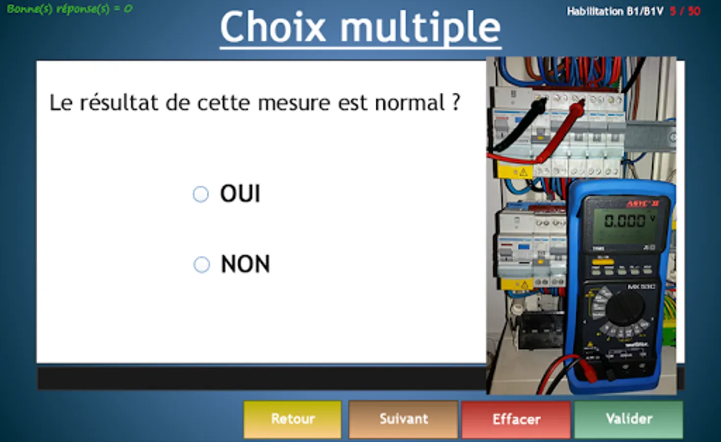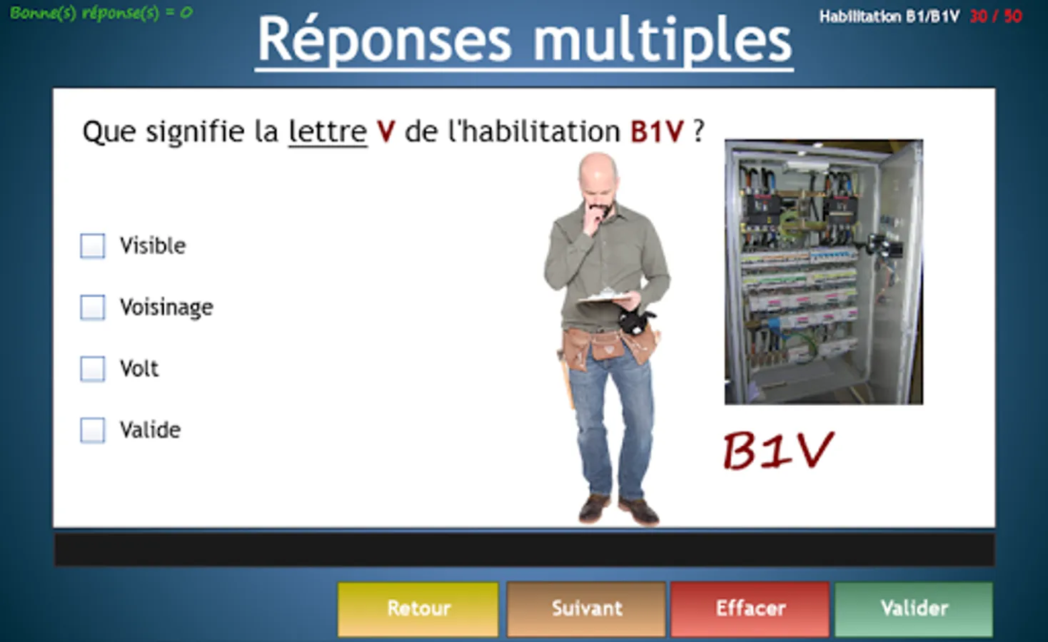 The survey validates knowledge to electrical certification B1 B1V running electrician Low Voltage.