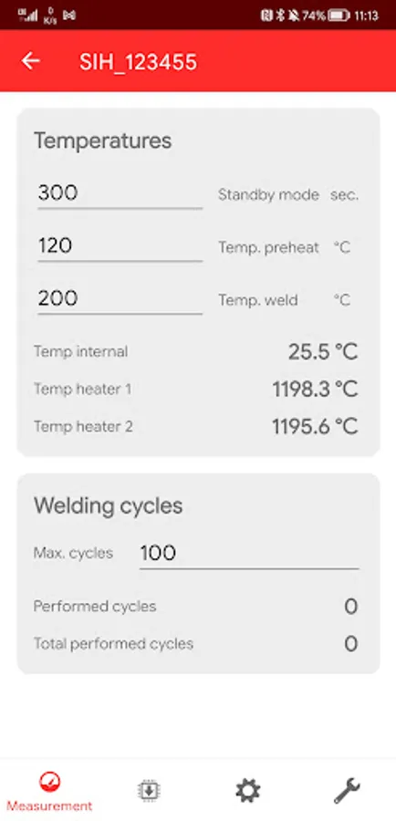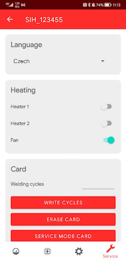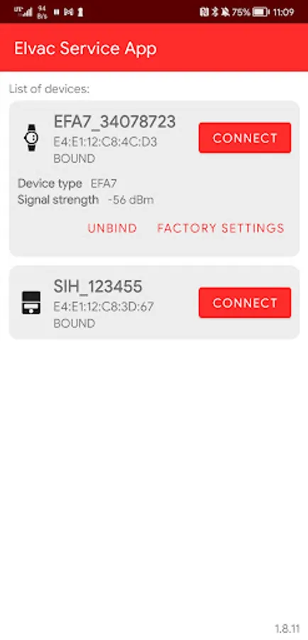 Application for configuration, controlling and data monitoring for ELVAC EFA7 and SIH bluetooth devices