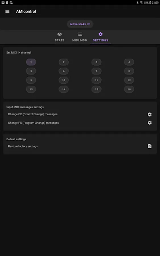 The AMI interface allows to switch channels and other guitar amp functions via midi messages.
