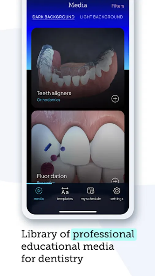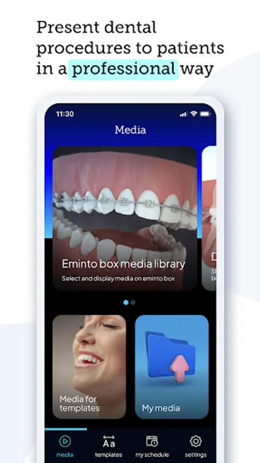 The media database is constantly being expanded with new items. All educational media are consulted with teams of medical specialists, and their effectiveness among patients is confirmed by new dental projects among eminto Clients.