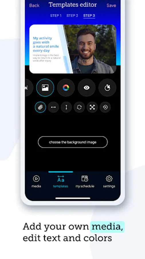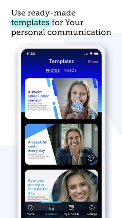 - database of video templates with editable texts dedicated to dentistry,