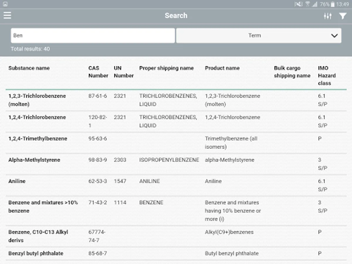 −Shipping information: explanatory information from the maritime transportation codes (e.g. IMDG, IBC and IMSBC codes) to help to understand how the substance is transported by sea and what responders can expect when they go on-board a vessel. Graphical representation of the GESAMP hazard profile;