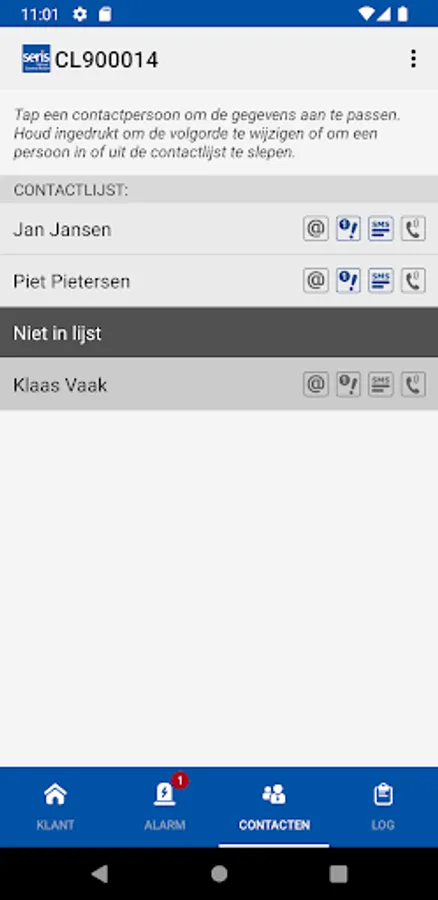 You decide who should be notified and how. This can be done via push notification, voice computer call, email or text message. If you wish to make adjustments to your contacts or the order of the call list, you are in complete control by means of our professional APP. It is also always possible to consult all history by means of the APP logbook in case of doubt or an incident.