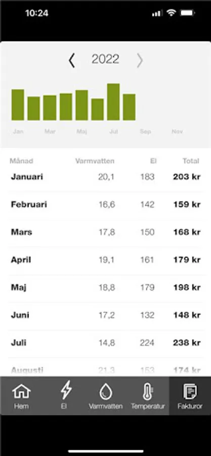 With My Footprint, you who live in a connected property can easily have full control of your home's energy consumption. Via the app/web, you can see your electricity and water consumption, both in real time and statistically over time, as well as your upcoming bill. With the help of My Footprint, you can keep track of your energy consumption and thus affect both the environment and your finances!