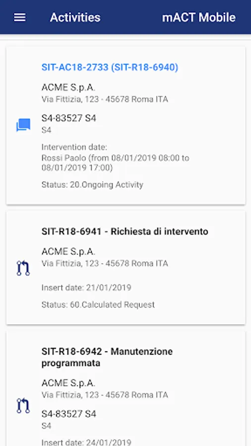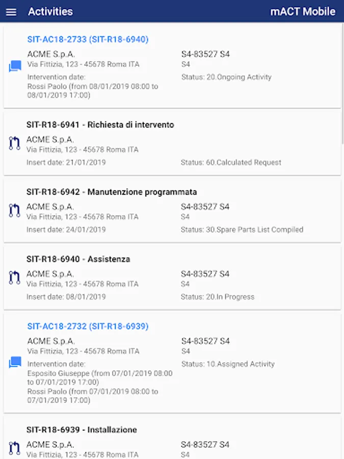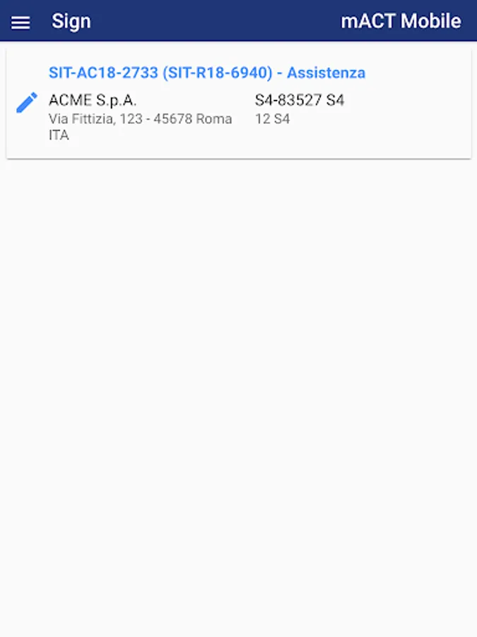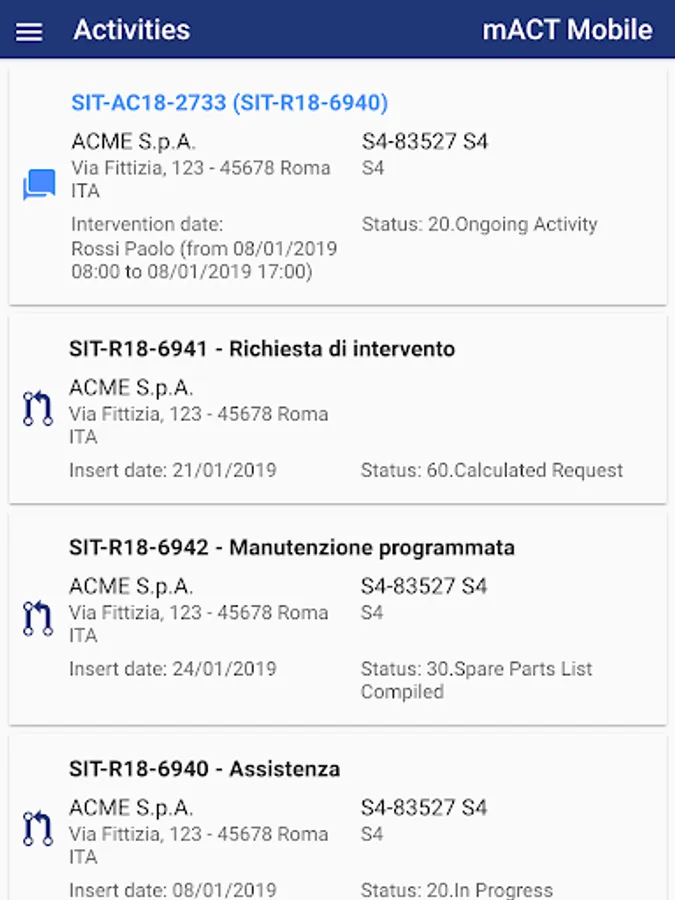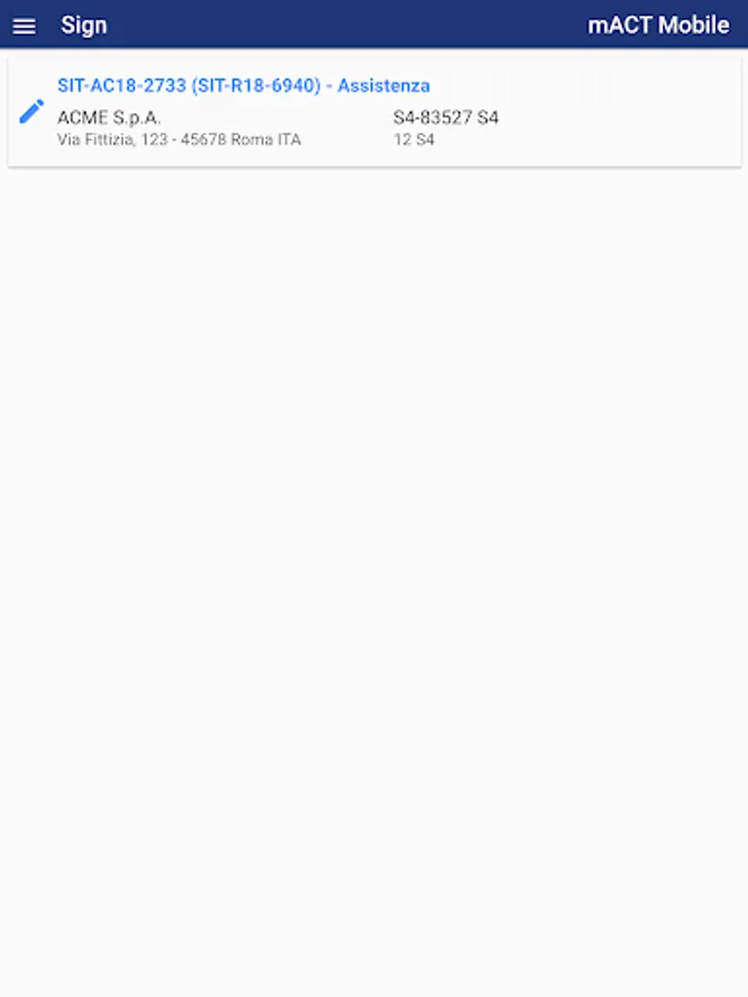 maintenACT App allows users of the maintenACT system to take charge of requests for technical assistance, to fill in the intervention report and to sign it together with the customer by acquiring the signatures via the touch screen of the device.