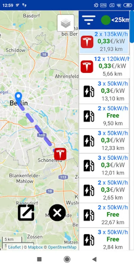 * Plan your routes efficiently with Eurocharging: Eurocharging can calculate for you the stops where recharging your battery is cheaper depending on the initial autonomy, the total autonomy of your vehicle and the prices of all the Points Recharge less than 3km from the route to follow.
