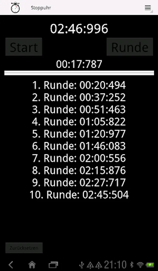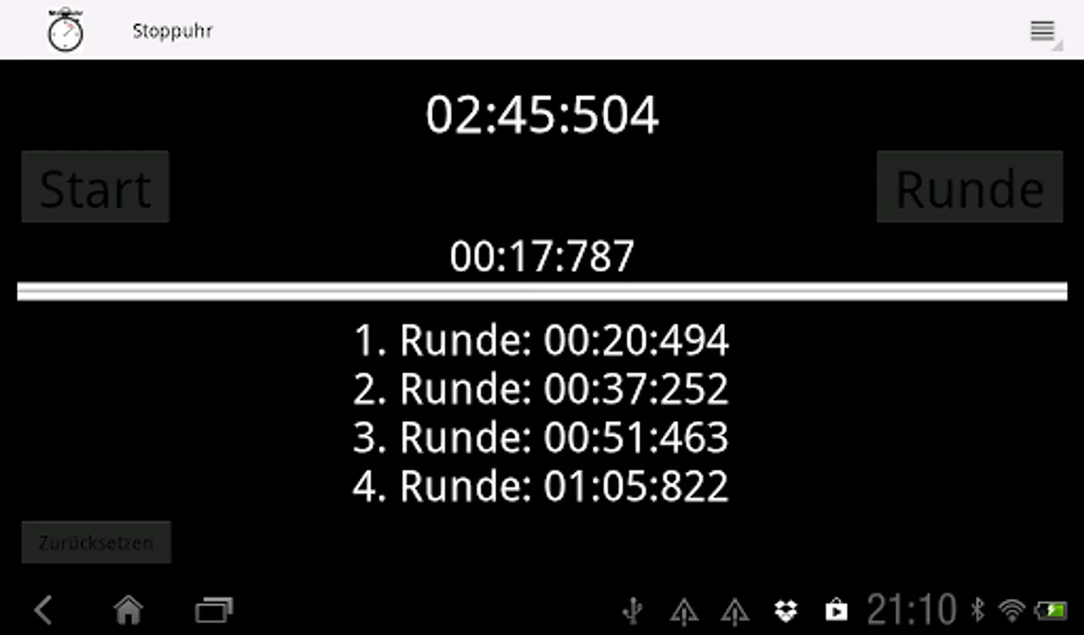 The stopwatch app, the time can easily be intuitive and accurate stopped in simple black design.