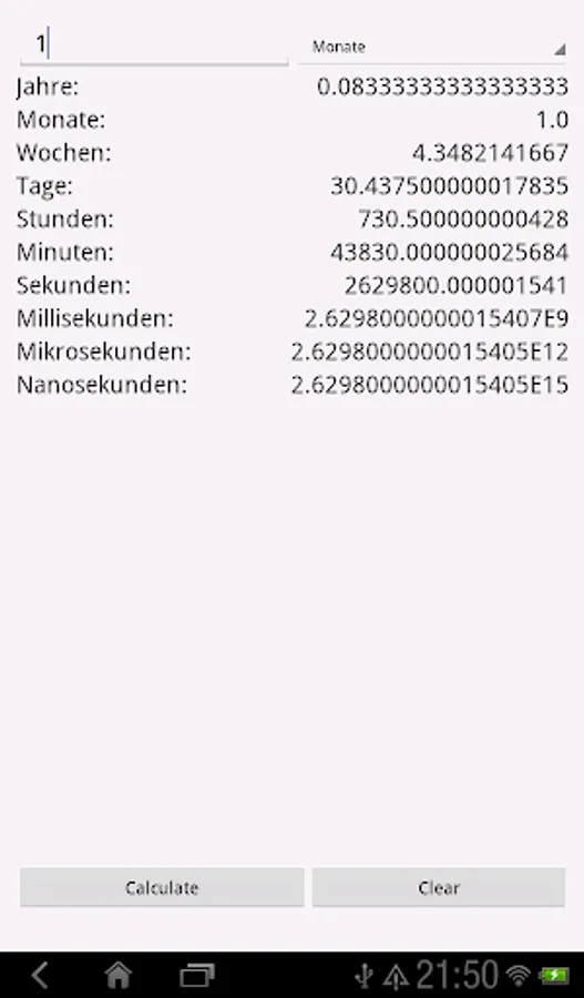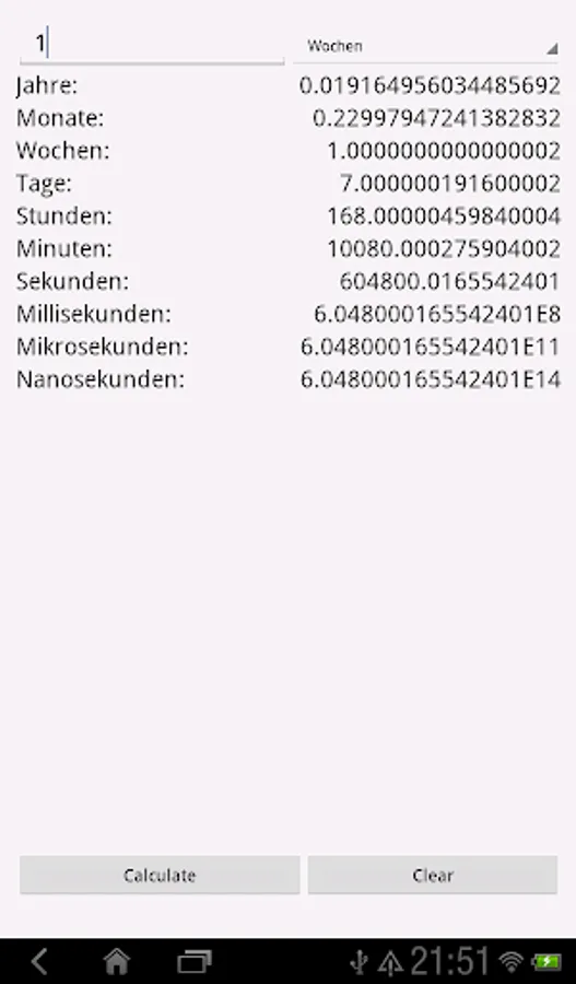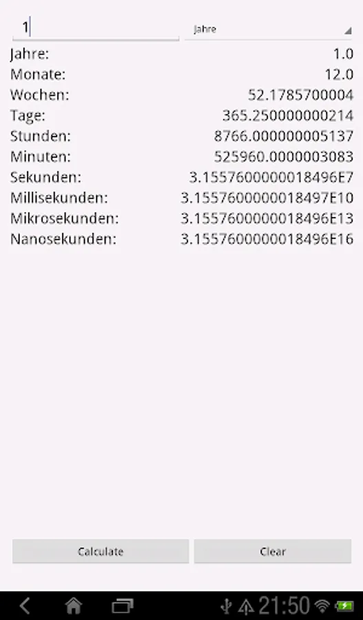 This app calculates time to time in other units. So you can quickly see how many seconds in a day or how many hours are needed for a year.