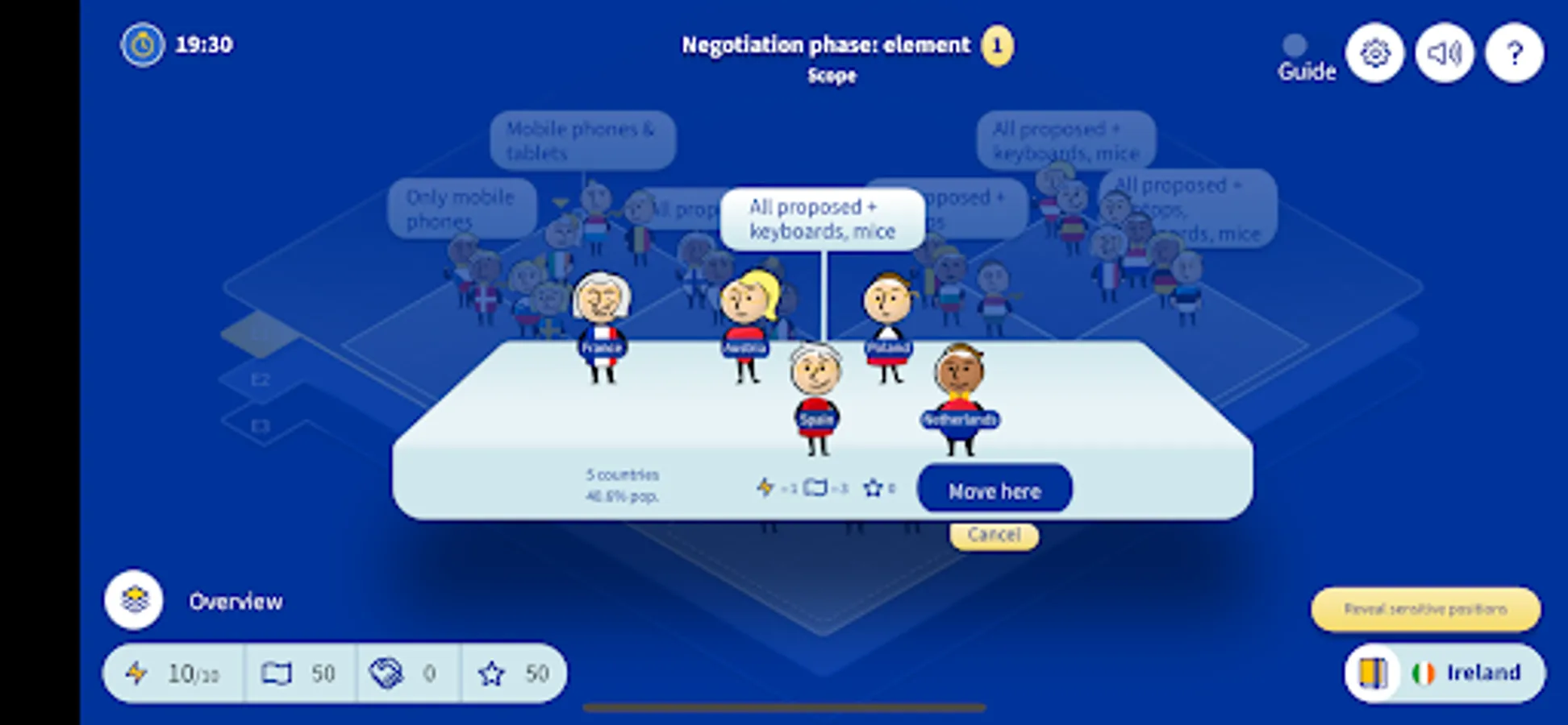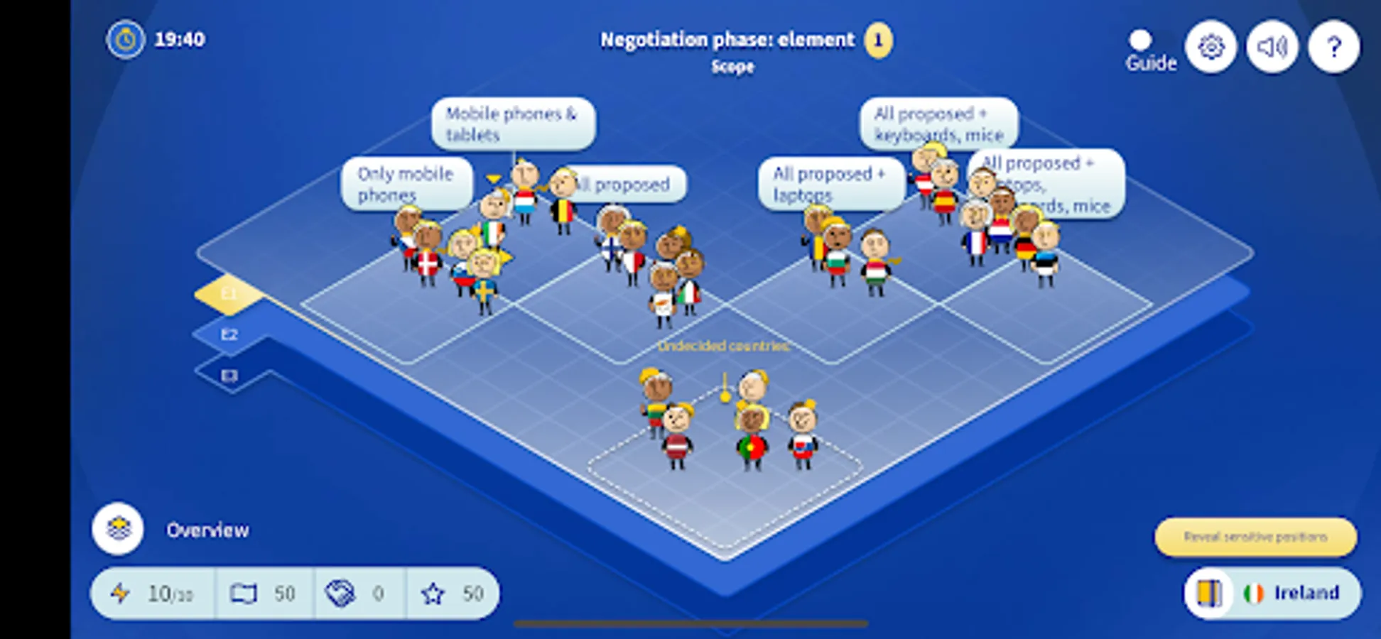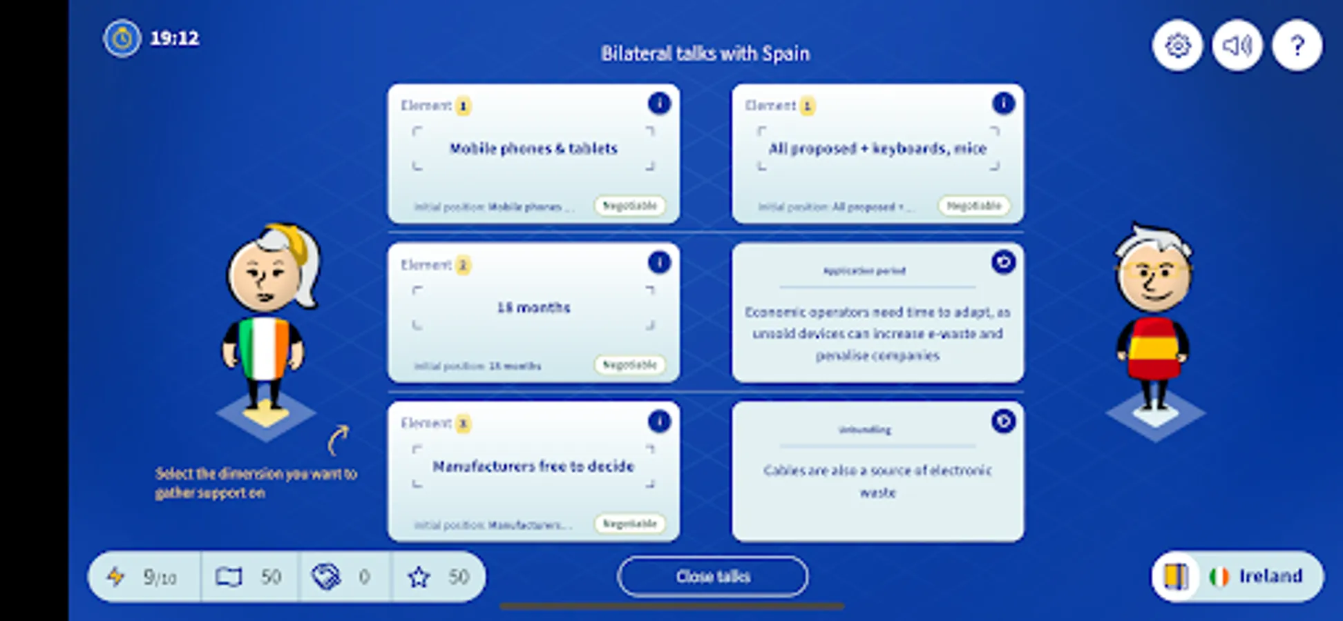 Disclaimer: this is an educational game based on the real negotiation process and real topics. However, the negotiation procedures have been presented in a simplified form and gamified, with the addition of fun elements and a degree of abstraction.