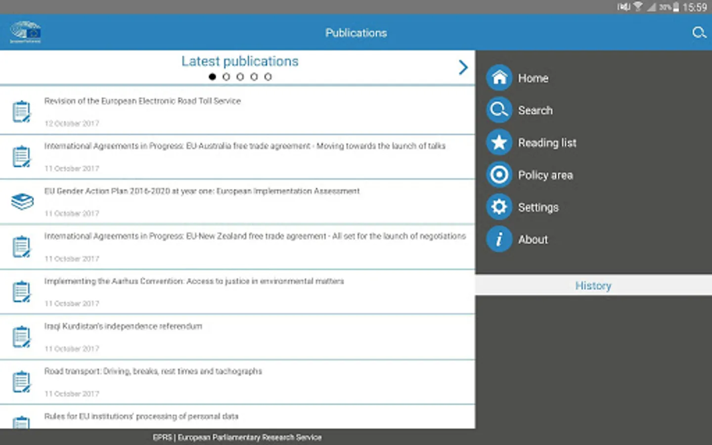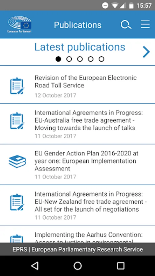 This app gives you access to all the publications and infographics published by the European Parliamentary Research Service (EPRS). As the in-house research service of the European Parliament, we provide independent, objective analysis on EU issues, policy and law.