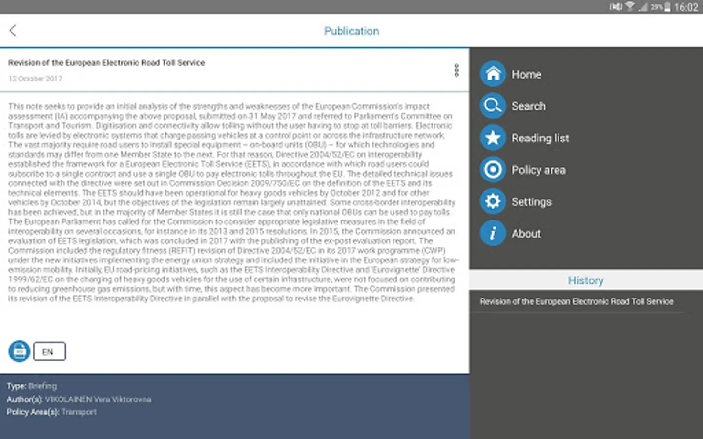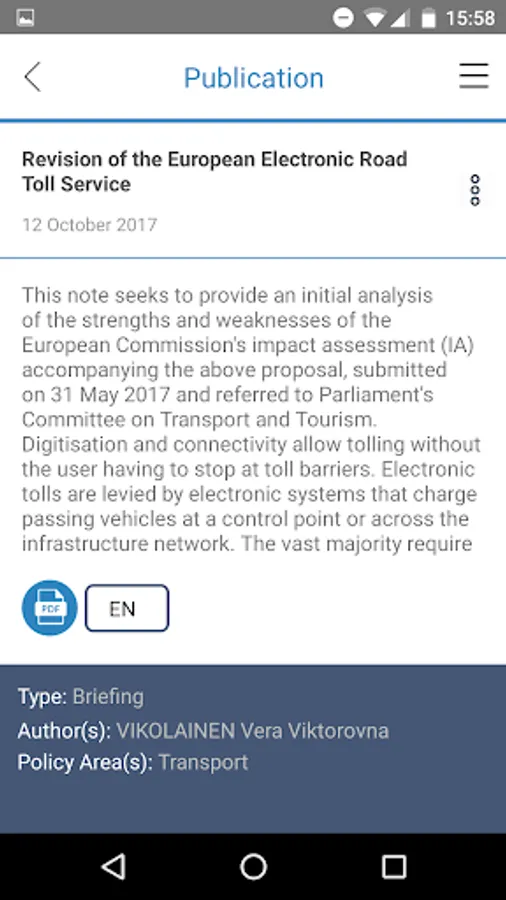 You can browse and search for publications by policy area, your favourite author, publication date, and even the size! Once you find the publication you want, you can easily share it with your friends or put it on your reading list to read later when you have no internet connection.