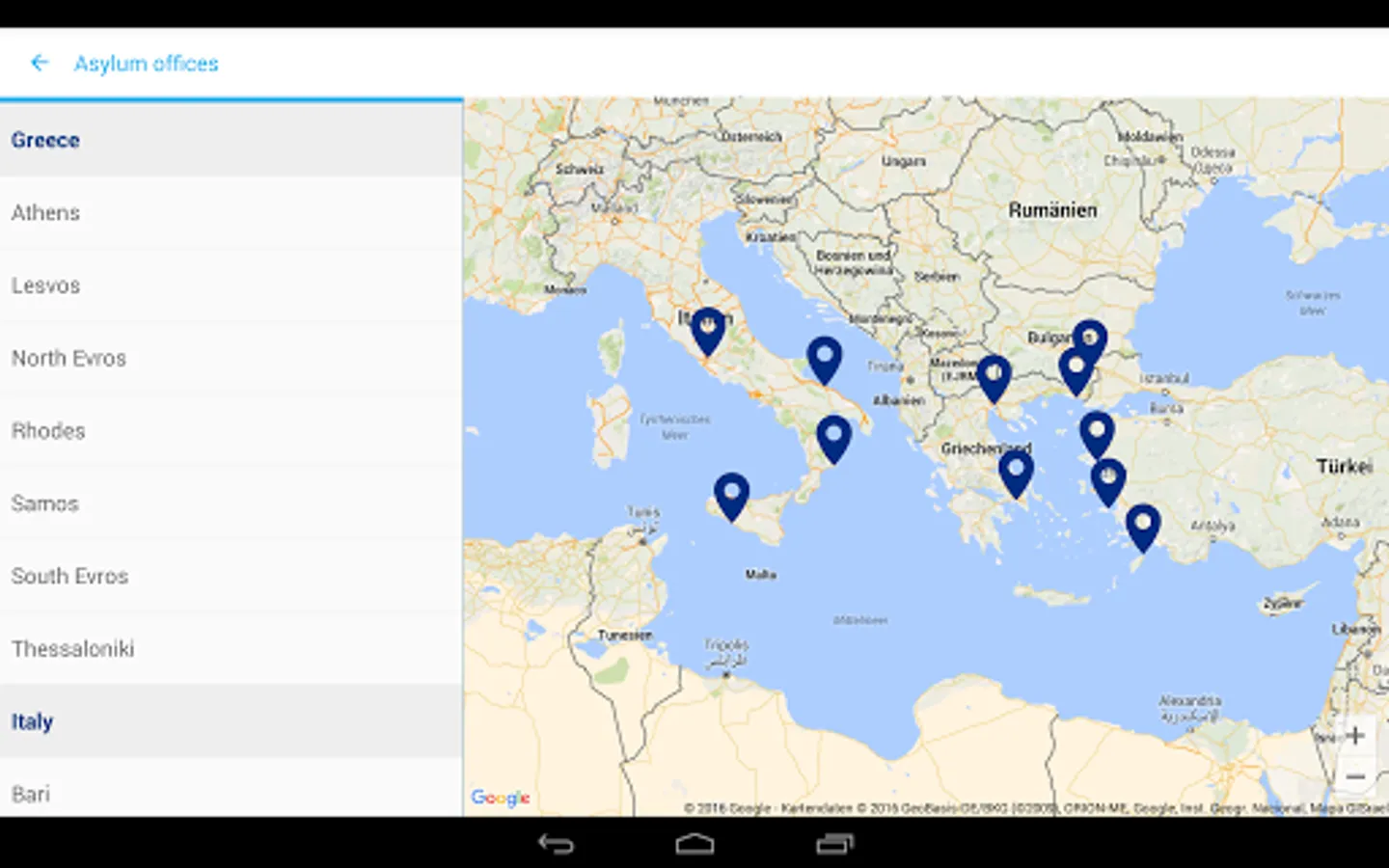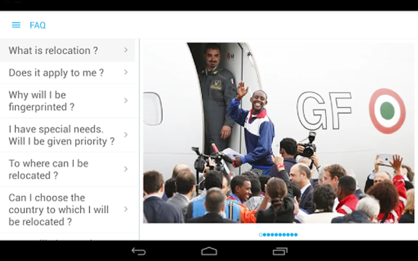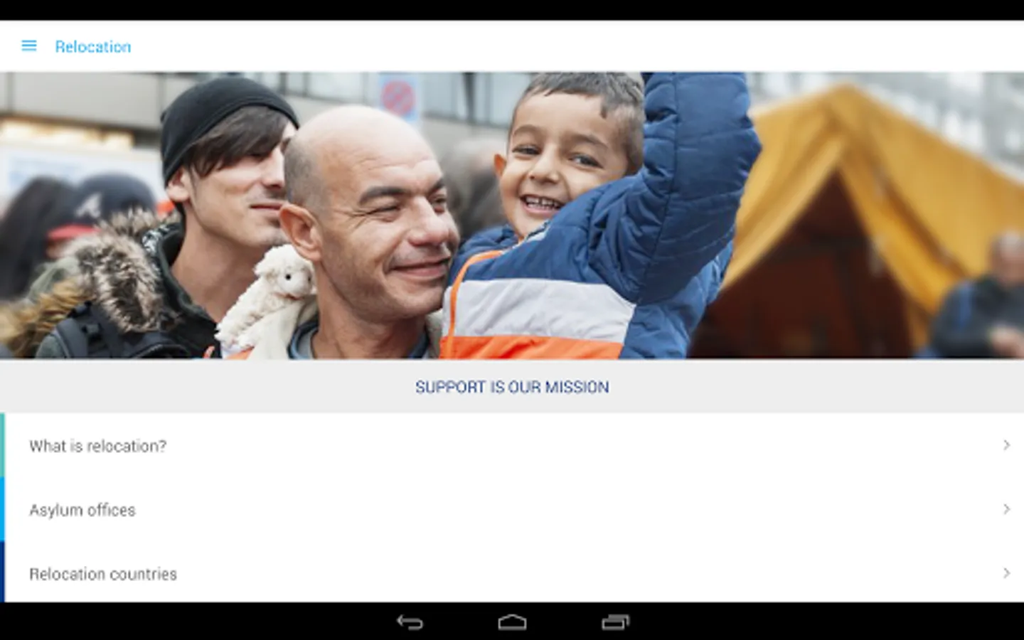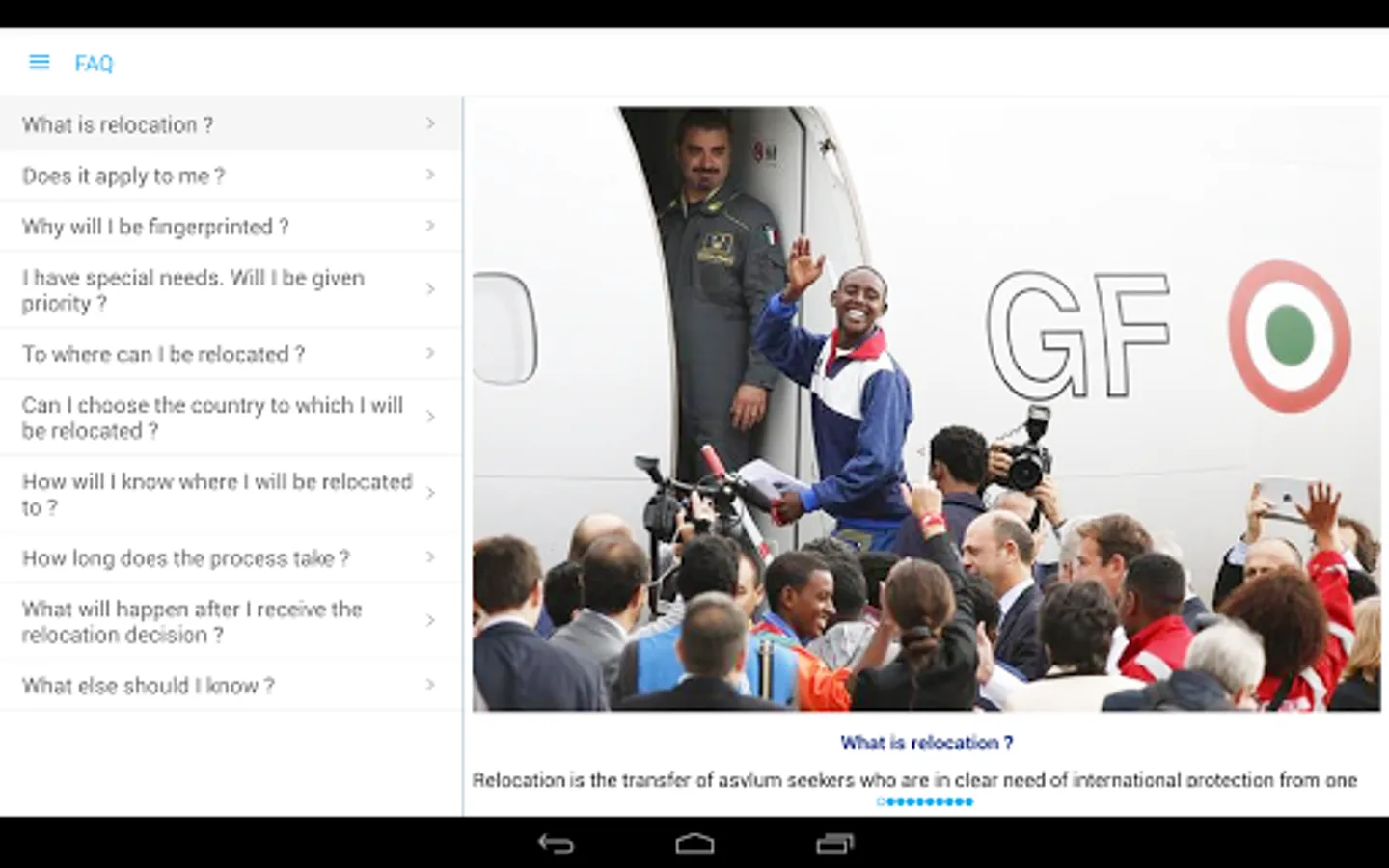 The App provides information on relocation to asylum seekers who are in clear need of international protection from Greece and Italy to another European state. The aim of this app is to help asylum seekers who are already situated in Greece and in Italy with information on the relocation procedure and their rights and obligations when applying for relocation. This app provides clear and concise information in various non-EU languages and also includes a section with FAQs. The information on the App will be regularly updated. The app is equipped with an interactive map, indicating the locations and the contact details of the various hotspots situated in Greece and in Italy. The app also contains videos showing success stories of people who have been successfully relocated to another European state.