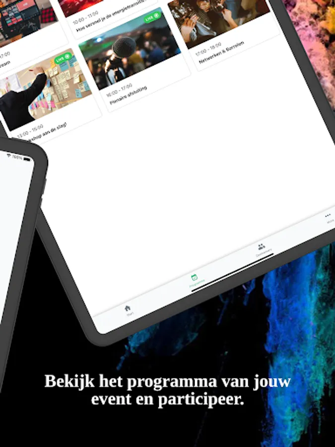 With the Eventleader app you have direct access to your e-ticket, you gain insight into the program, you can network with other participants and you can find the latest news.
