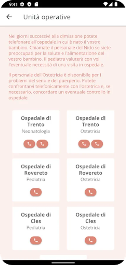 of the Autonomous Province of Trento. It also offers several features in continuous development. Women, for example, can view appointments for visits and check-ups booked through the CUP (Single Booking Centre) and find out about all the maternity support services present in the province. TreC Mamma is the result of a project
