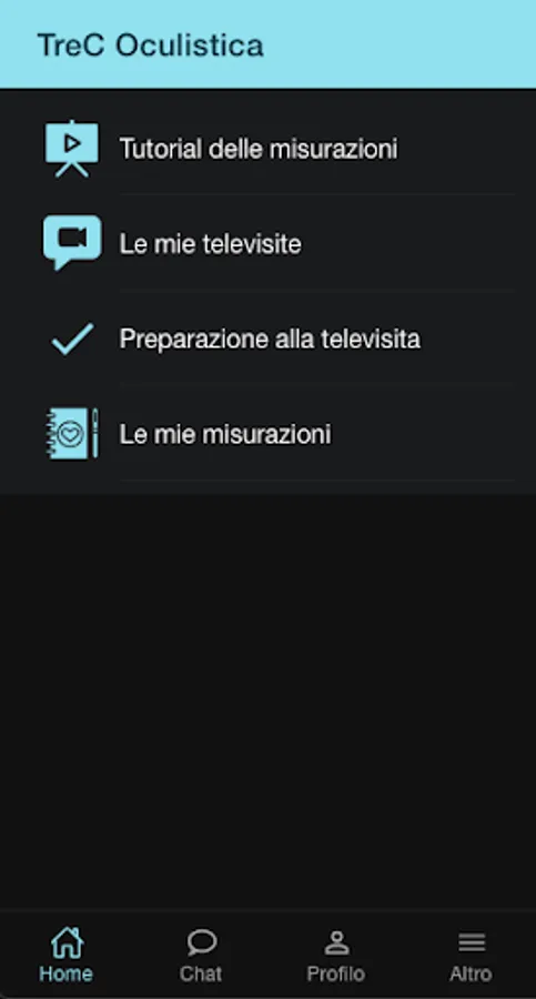 TreC Oculistica allows you to have support in the collection of measurements necessary for the healthcare operator to be able to perform the televisit in the best possible way (Tutorial). It includes the possibility of collecting the measured information relating to one's vision condition (Preparation for the TV visit and My measurements), of sharing information directly with the health care professional (chat) and of carrying out the TV visit on the scheduled day and time (the my television visits).