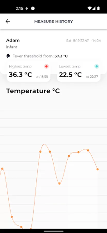 After staring measurement, you will receive alerts to your phone, if certain temperature levels are exceeded.