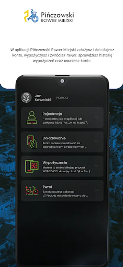The Pińczów City Bike application is a full set of tools for your mobile device that will make it easier for you to use the city bike in Pińczów every day.