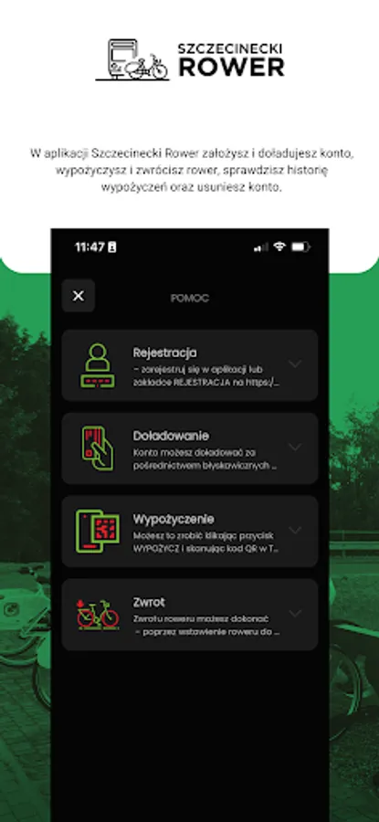 You can also check your account balance and rental history, all as quickly and easily as possible. After the ride, rate your rental giving it the highest number of stars. We wish you pleasant and always safe journeys around Szczecinek