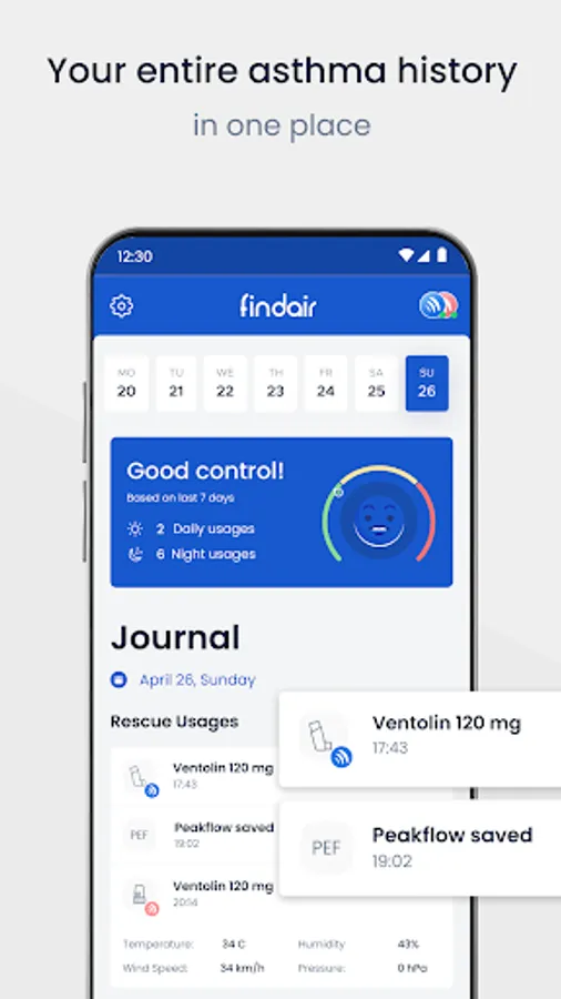 FindAir application is a smart asthma diary for your smartphone. No more manually filling in data every time you use your medicine. With FindAir, you can easily add all information with single clicks and monitor your progress to better understand your asthma.
