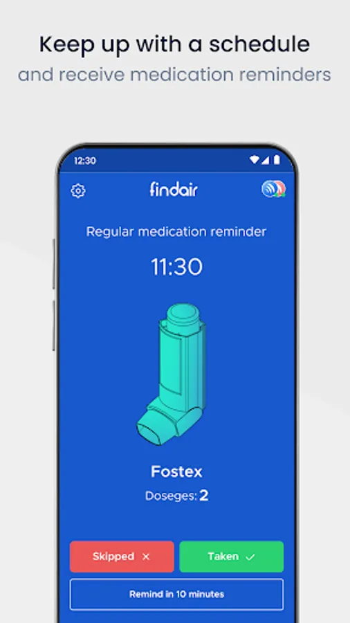 The key to proper asthma therapy is relevant data. Without it, neither you nor your doctor is able to make the right decisions. The app helps you easily collect data about every use of your rescue and regular drugs, your treatment progress, as well as environmental information such as air pollution, weather conditions and allergens in your area. FindAir also allows you to monitor the number of doses you have left in the packaging and predict when it will end.