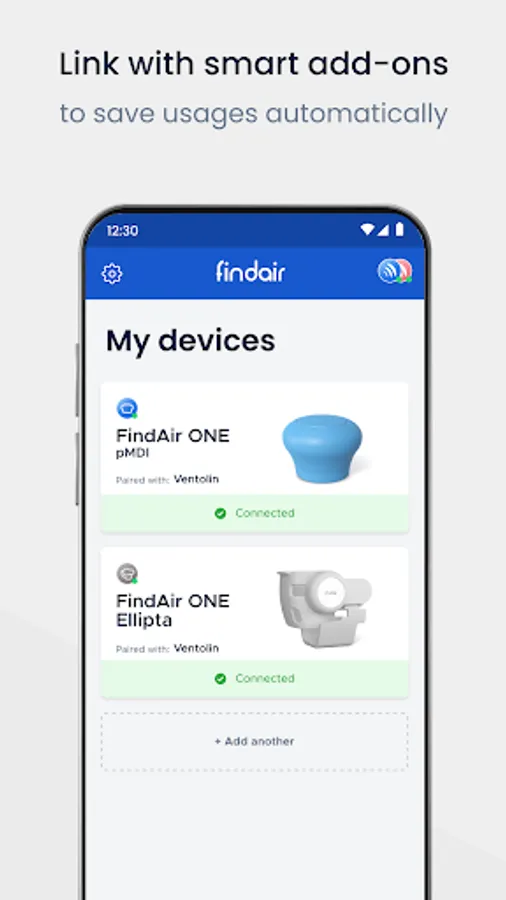 Moreover, the application connects to the FindAir ONE device - a smart add-on for inhalers. This device allows you to monitor your treatment progress more precisely, generate reports for yourself as well as your doctor and receive real-time notifications of hazards in the environment.