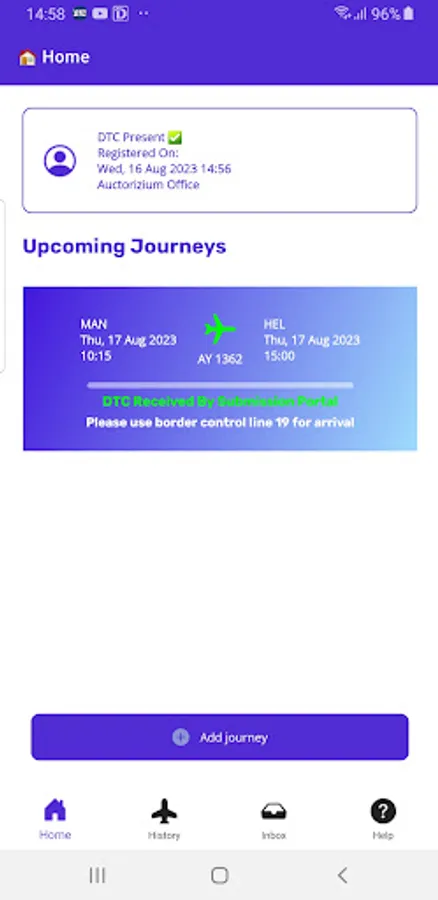 3. Send the information with the app to the Finnish Border Guard 36-4 hours before your flight. Use the DTC at Helsinki-Vantaa airport for border control. Take your passport with you on your journey.