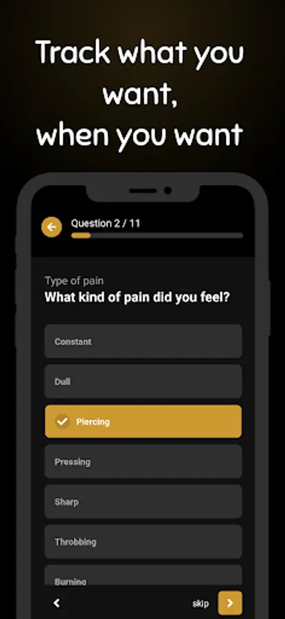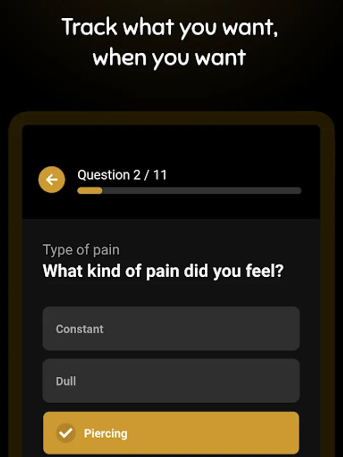 Are you experiencing pain and finding it difficult to remember the details to discuss with doctors? This pain log app will help you keep track of your pain not to have to rely on your memory. A pain log tracks degree of pain, symptoms, and medications, and activities that cause discomfort. With this pain log you can easily record your experiences and then print and take to your medical provider, or save in a digital format.