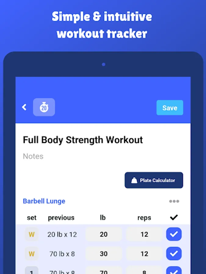 This workout tracker is quick and easy, so that you can spend your time exercising. Your time should be spent doing the work, not recording it.