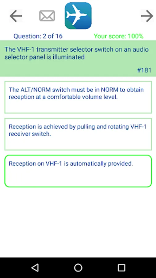 Questions are presented in a easy, no frills, no distractions manner in order to let you fully concentrate on the job at hand: know the aircraft and the procedures.