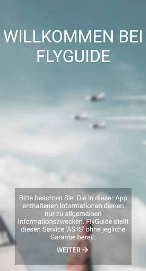 The information contained on FlyGuide mobile app (the "Service") is for general information purposes only. FlyGuide provided this service 'AS IS' without any warranty. FlyGuide assumes no responsibility for errors or omissions in the contents on the service. In no event FlyGuide shall be liable for any special, direct, indirect, consequential, or incidental damages or any damages whatsoever, whether in an action of contract, negligence or other tort, arising out of or in connection with the use of the Service or the contents of the service. FlyGuide reserves the right to make additions, deletions, or modification to the contents on the Service at any time without prior notice.