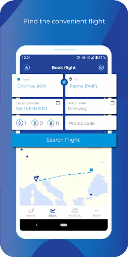 Download the FLYONE app - an interactive, intuitive and user-friendly platform for booking flights, checking in, receiving discounts, using vouchers and testing other smart options.