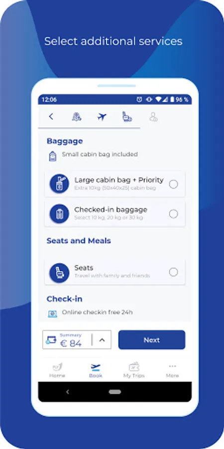 Check in to the app, get your boarding pass on your phone and scan it at the airport.