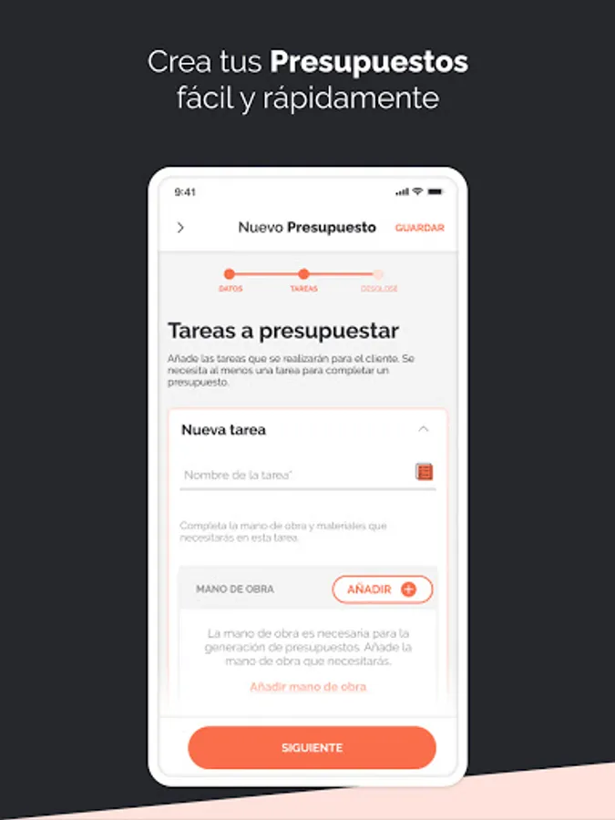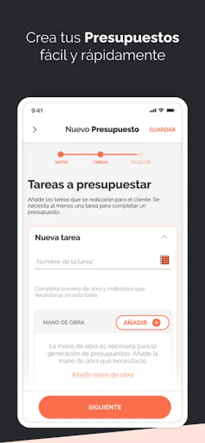 • Digitize all your materials, construction hands, costs, etc ... in a simple app