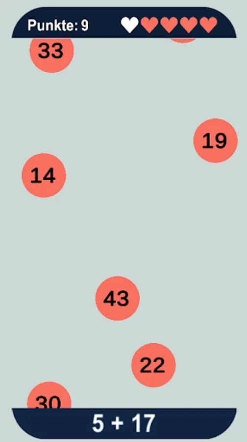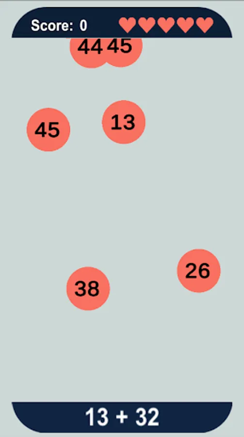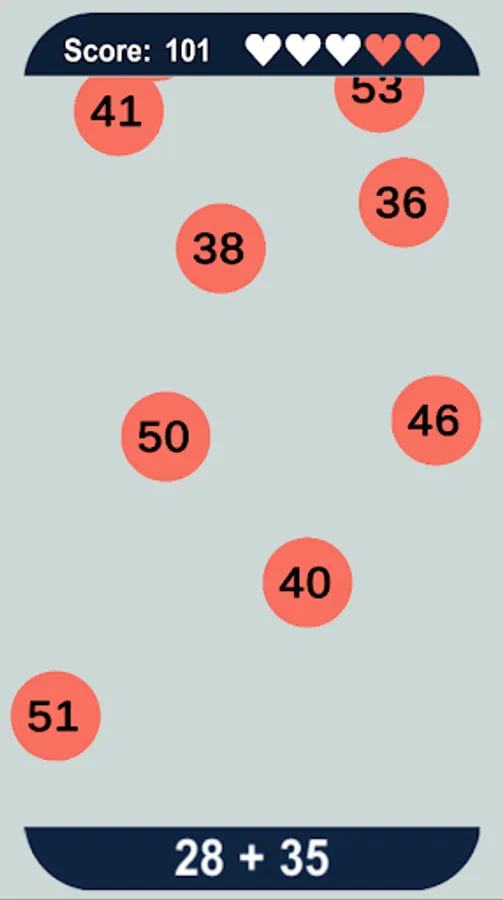 Bubbles with numbers raining through your screen. Tap on the correct answer to score. You have three chances to tap on correct bubble otherwise you lose a life. The faster you are the higher you score.