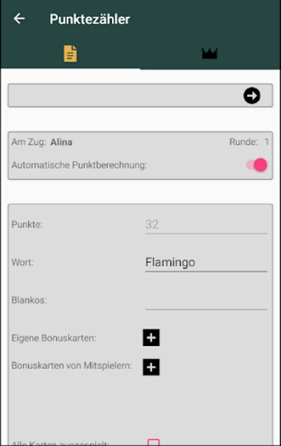With the app you can note the points for Scrabble cards or have them calculated. There is also an overview of the games played and player statistics.