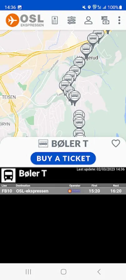 In the app you can see on a map the bus stops where the buses stops as well as where the buses are in real time. When selecting a bus stop the user can see the times of the next bus departing from this bus stop.