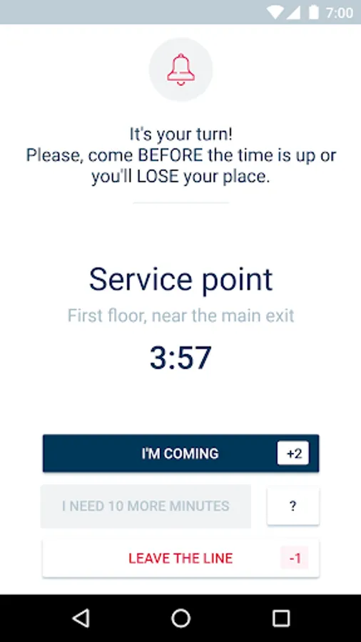 Once application started, you'll see the lines around you. Join any line and live your waiting time with fun and use. When it is your turn, you'll be called by the app. That's all, folks.