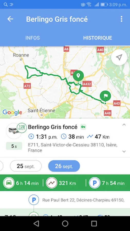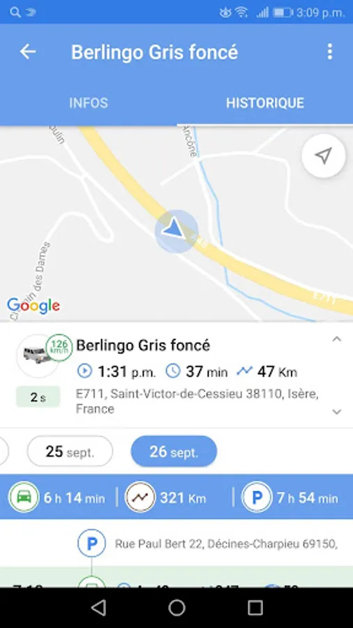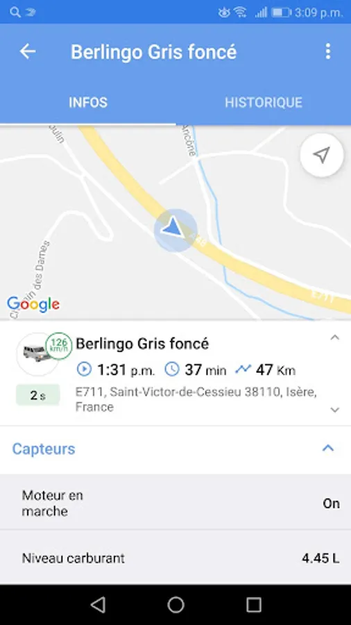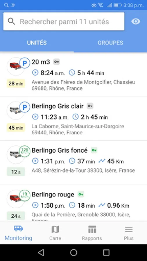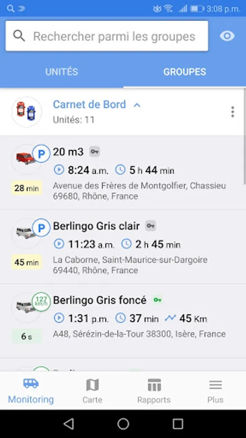 In real time as well as offline you can display the positions of your vehicles or connected objects, the journeys made, the stops, the status of your drivers or vehicles and the values of the various sensors (tank level, fuel consumption, engine information, status of the driver if connection to the tachograph etc ...)