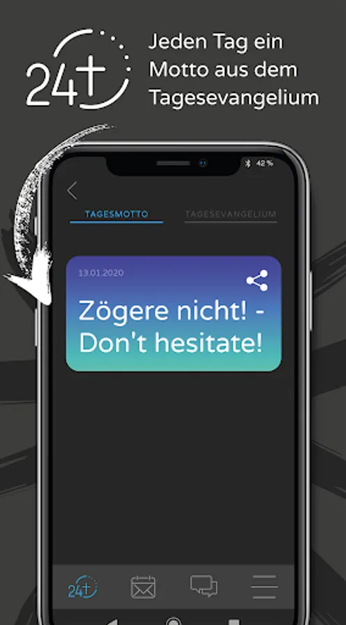 Here you will find the daily gospel as a text or audio version and a suitable daily motto that you can get on your smartphone, if desired via push message.
