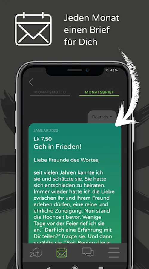 In addition, there is a letter for you every month. Developed from experiences with the gospel - in 23 languages. In addition, a wide variety of experiences that people have and have had with the words of Jesus.