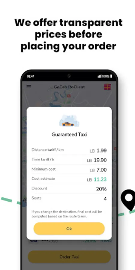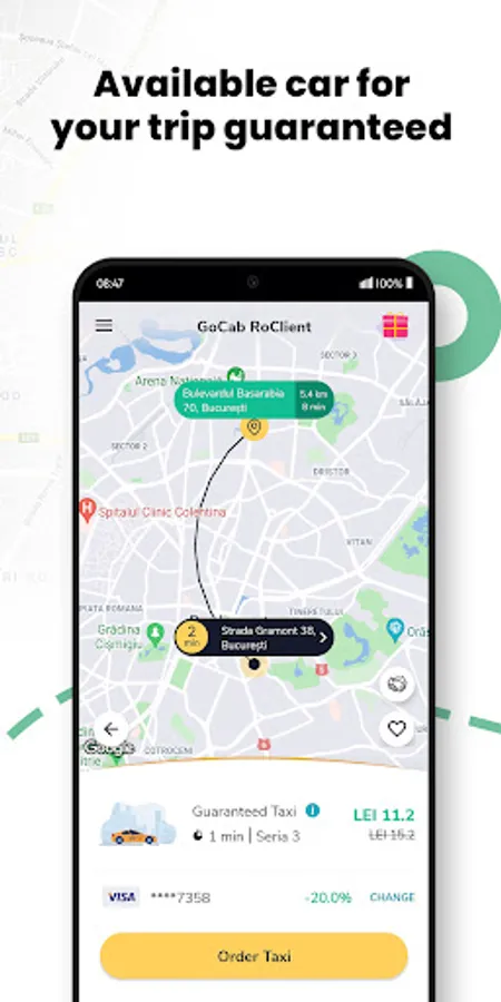 GoCab is a free taxi app launched in Romania with more than 300,000 active users and it has the largest number of taxi drivers available.