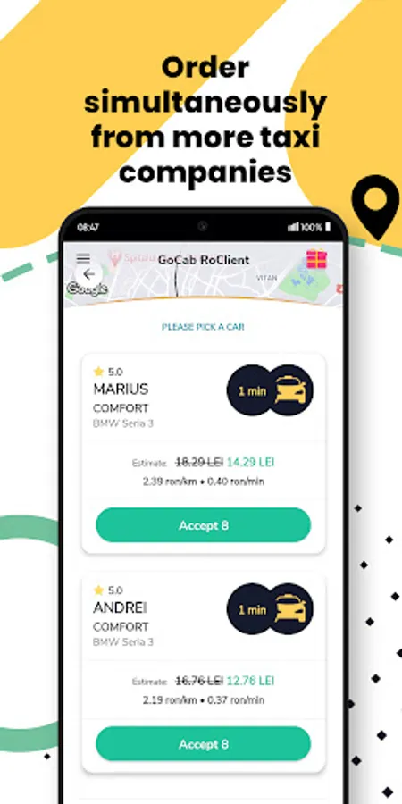-> Order simultaneously from more taxi companies