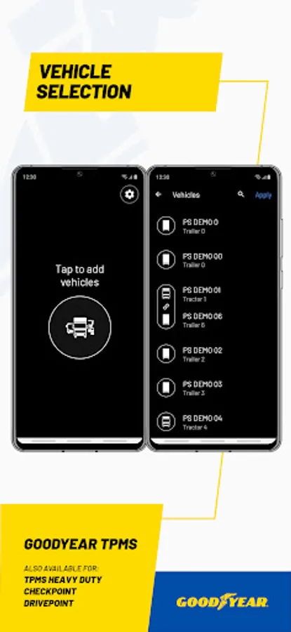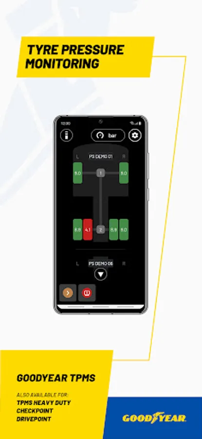 Goodyear DriverHub App is only applicable in conjunction with the following solutions: Goodyear DrivePoint, Goodyear CheckPoint, Goodyear TPMS and Goodyear TPMS Heavy Duty. Please note that a contractual subscription to one of these solutions is mandatory to access the mobile application.